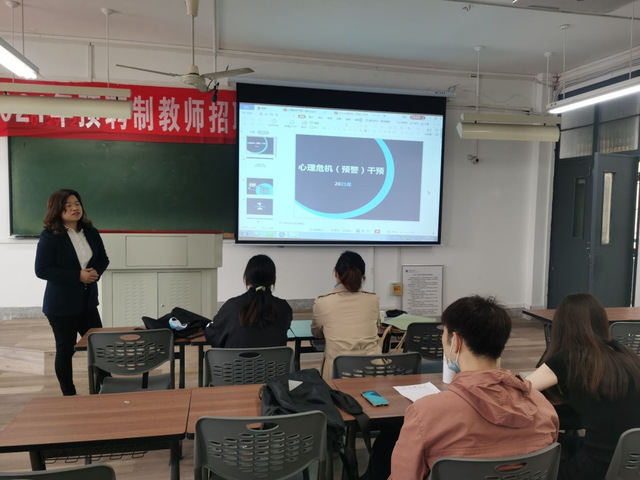 刘宽子老师首先结合自身的工作经验,解释了危机既是危险,又是机会,关键是要做到早发现,早预防。刘老师充分利用心理危机干预的理论研究、个案实践就如何识别心理危机做了专业的讲解。当提及遇到需要帮助的学生时,刘老师详细讲述了应该怎么根据具体情况进行恰当的处理以及构建心理危机预防和干预体系的重要性。此外,刘老师对危机干预(预警)对象界定也进行了仔细的讲解说明,同学们个个听得津津有味,感触颇深。