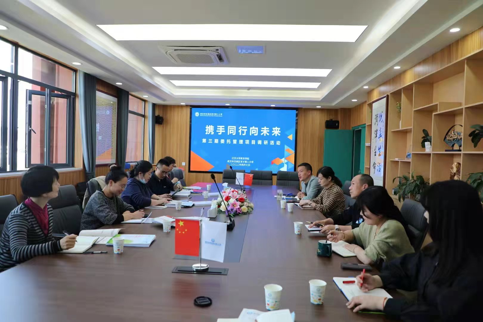 OB彩票(中国)唯一官方网站 是武汉市教育局确定的武汉市实施第三期委托管理的支持单位,对口支援汉南区育才二小和东西湖区远洋世界小学。本次调研即旨在了解受援单位情况,协商制定委托管理工作方案。汉南区育才二小校长柳田牛携班子成员在会议室接待了专家团队。