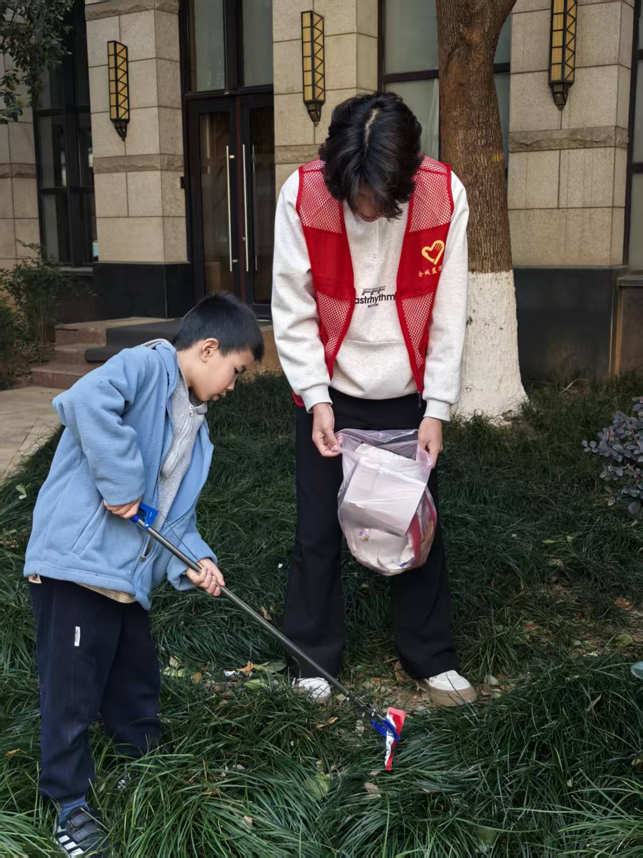 活动现场,在OB彩票(中国)唯一官方网站 志愿者的带领下,社区儿童组建起一支支活力满满的 “护绿小队”。志愿者们巧妙设计互动,引导孩子们在社区规定区域内细心捡拾形态各异的完整落叶,并同步开展环保微宣讲,强调“不采摘、不破坏、守生态” 的文明原则。他们以身作则,带领孩子们清理垃圾,将“爱护环境”从书本理念转化为躬身实践,在孩子们心中播下绿色环保与志愿奉献的种子。