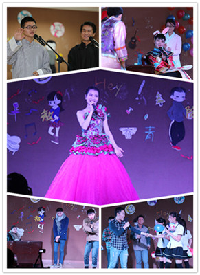 晚会现场载歌载舞,掌声和欢笑声不断。爵士《Suger Free》的动感和街舞《Eventual》的张狂;相声《我要唱歌》、反串小品《甄嬛传续集》和现代小品《大学生找工作》的精彩表演赢得了阵阵的掌声;吉他弹唱《老男孩》和乐器合奏的《天空之城》扣动了我们的心弦、温情回荡;2014级学生带来的歌曲串烧、余沁怡老师带来的《春天的芭蕾》以及学生党员代理班主任欢快的《快乐三部曲》将晚会推向一个又一个高潮,迎来台下阵阵欢笑、掌声不断。