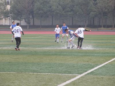 足球队表现出了他们无惧恶劣条件的拼搏精神和精诚协作的团队精神。我们相信在未来的日子里他们一定会成长为一个高素质高水平的团队。