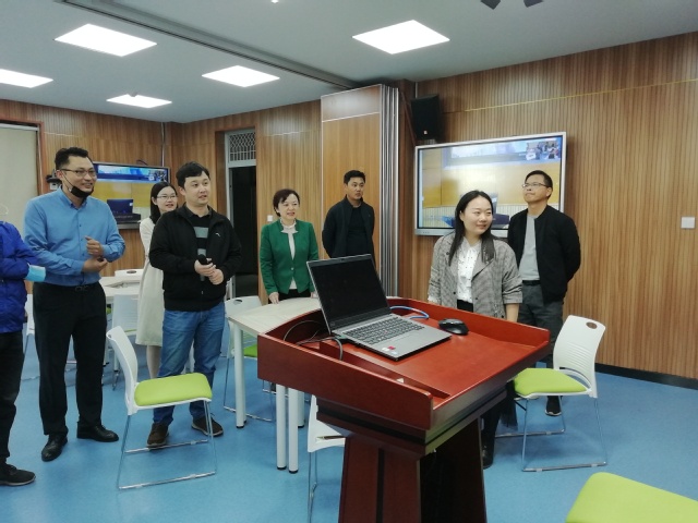2020年10月23日,武汉体育OB彩票 体育科技OB彩票 教务处一行8人,由教务处副处长高明带队,来我校心理与行为实验中心的智慧实验室参观访问,我校心理与行为实验中心陈丹文主任针对智慧实验室的建设方案、设备功能以及今后的教育教学方式方法发展趋势等向他们做了详细的介绍。